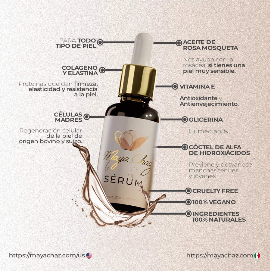 Importante: si se usa de día, aplicar protector solar después del sérum para evitar manchas por exposición al sol.